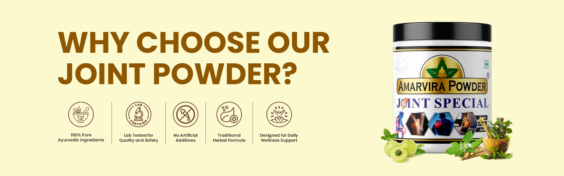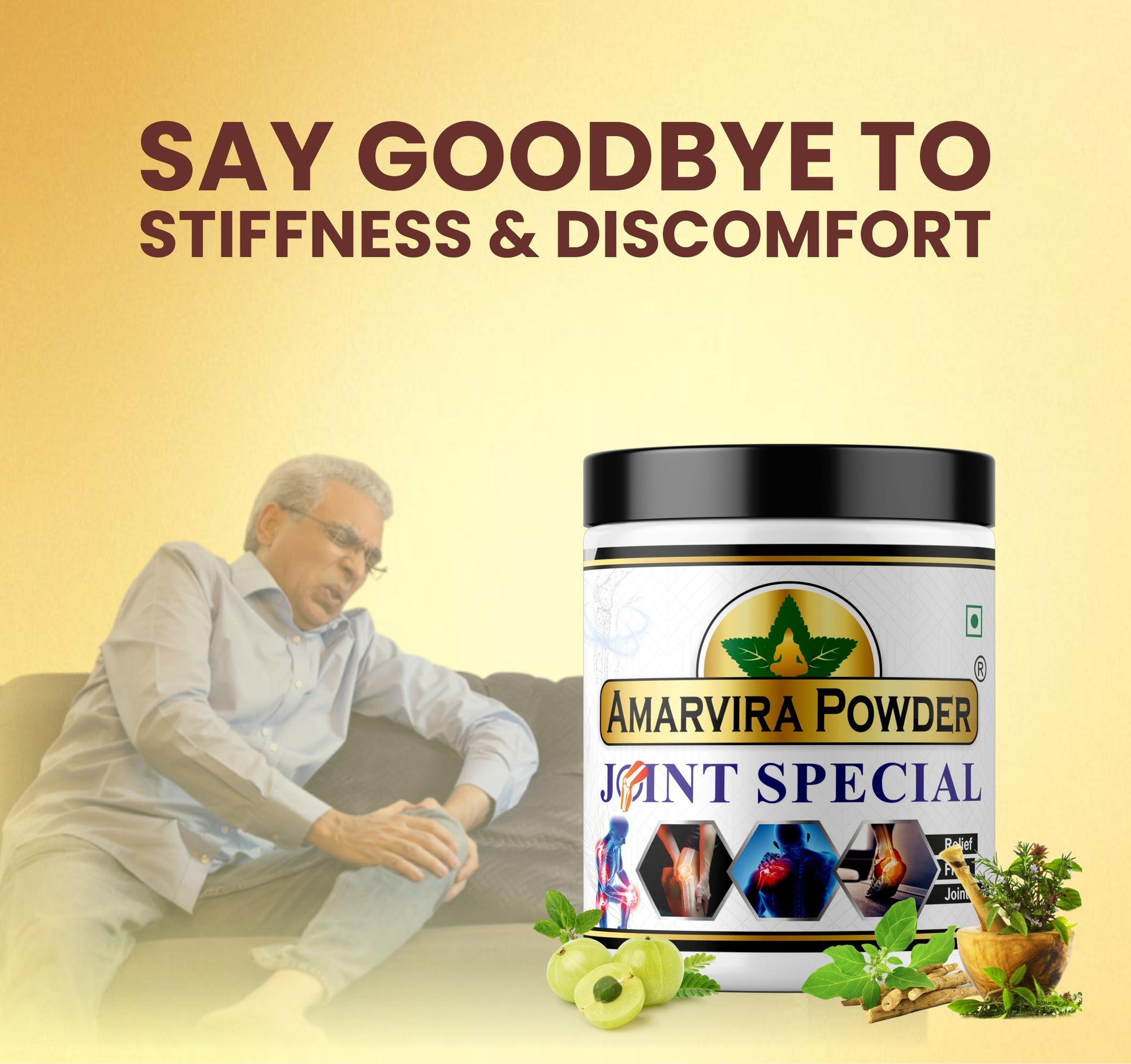 Amarvira Ayurvedic Joint Powder – Reduces Swelling, Relieves Knee & Back Pain & Promotes Flexibility